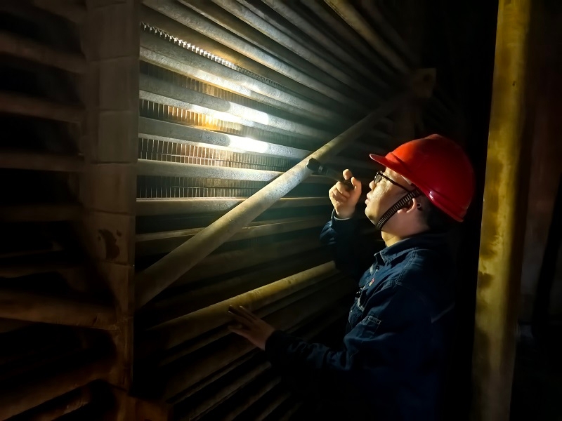 楊學(xué)毅進(jìn)行低溫省煤器沖洗后驗(yàn)收(鄂州發(fā)電公司供稿)
