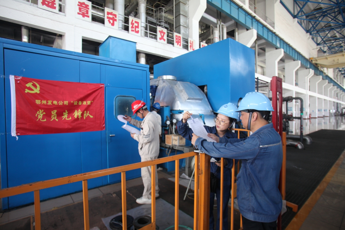 鄂州電廠檢修部黨員先鋒隊(duì)及時(shí)開(kāi)展消缺工作(攝影:王鑫)