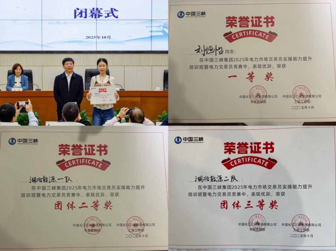 10月28日至31日,三峽集團(tuán)在宜昌舉辦2025年電力市場(chǎng)交易員實(shí)操能力提升培訓(xùn)班暨電力交易員競(jìng)賽。來自長(zhǎng)江電力、三峽能源、湖北能源等多家單位共93名選手、31支隊(duì)伍同臺(tái)競(jìng)技。經(jīng)過激烈角逐,新能源公司劉恒怡個(gè)人成績(jī)位列第一名,榮獲個(gè)人一等獎(jiǎng);湖北能源一隊(duì)(顧望、聶赟、劉恒怡)斬獲團(tuán)隊(duì)二等獎(jiǎng),湖北能源二隊(duì)(周子天、李向龍、夏文馨)奪得團(tuán)隊(duì)三等獎(jiǎng);售電公司夏文馨、湯光植、顧望,鄂州發(fā)電公司聶赟,襄陽(yáng)宜城發(fā)電公司朱杰文,漢江能源公司周子天等6人榮獲個(gè)人優(yōu)秀獎(jiǎng)。